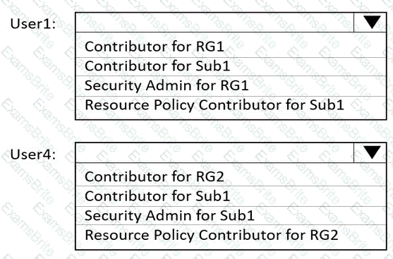 Which role should you assign to each user? To answer, select the appropriate options in the answer area.