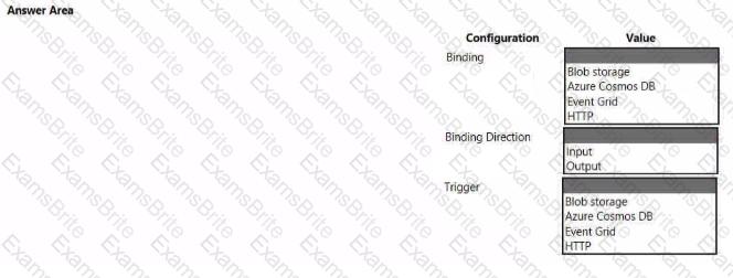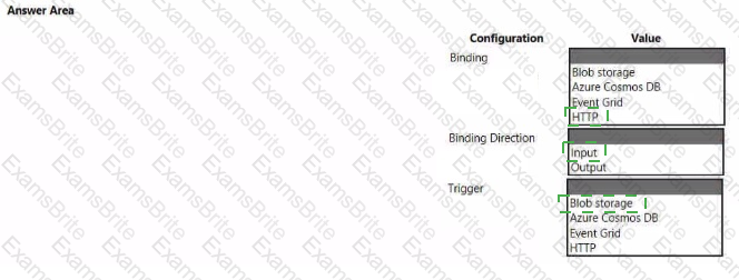 How should you configure the solution? To answer, select the appropriate options in the answer area.