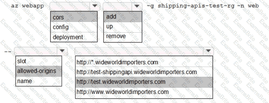 How should you complete the CLI statement? To answer, select the appropriate options in the answer area.
