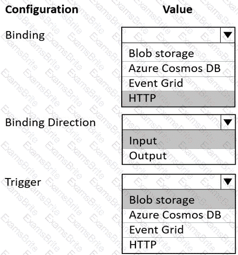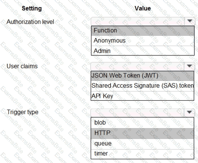 How should you implement the function? To answer, select the appropriate options in the answer area.