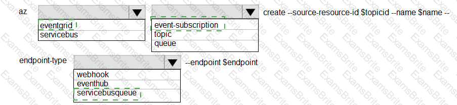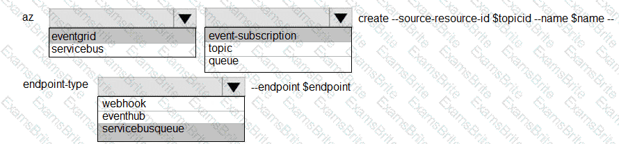 How should you complete the Azure CLI command? To answer, select the appropriate options in the answer area.