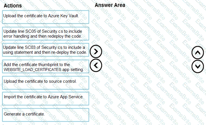 Which three actions should you perform in sequence? To answer, move the appropnate actions from the list of actions to the answer area and arrange them in the correct order.