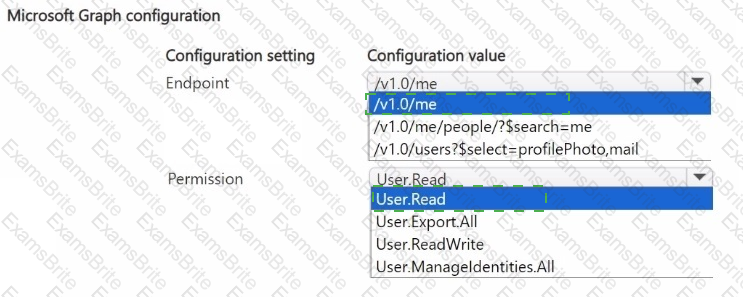 Which Microsoft Graph configuration should you use? To answer, select the appropriate options in the answer area.