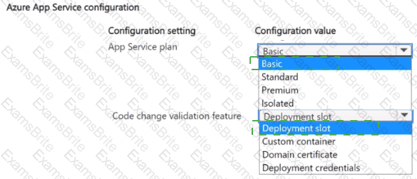 Which configuration values should you use? To answer, select the appropriate options in the answer area.