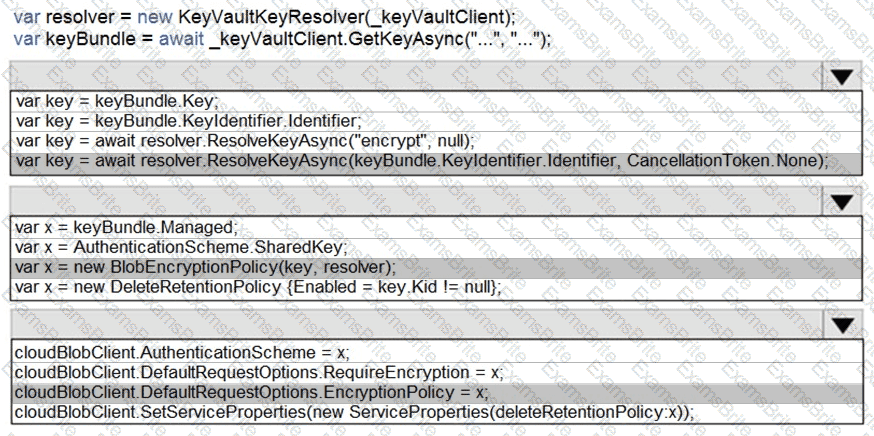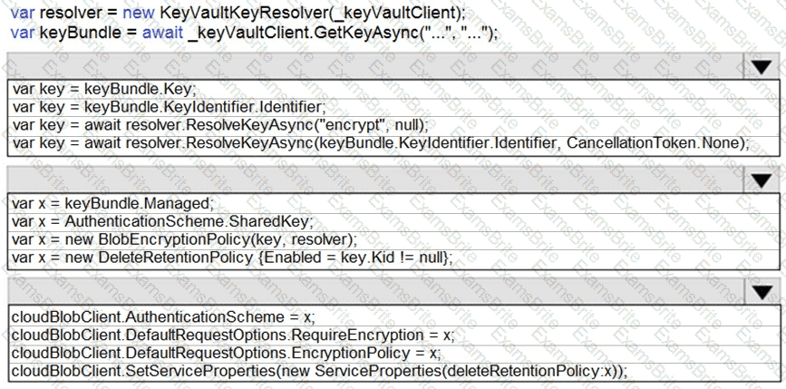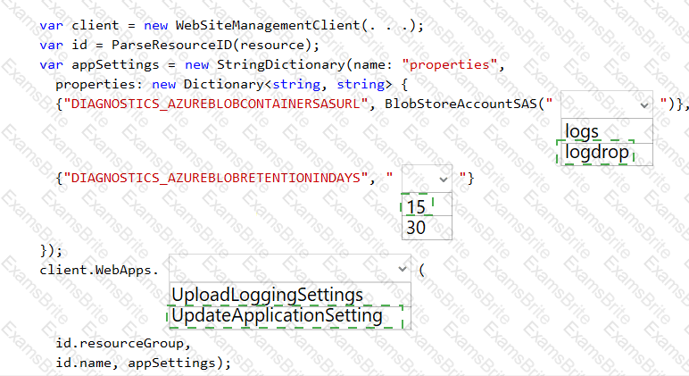How should you complete the code? To answer, select the appropriate options in the answer area.