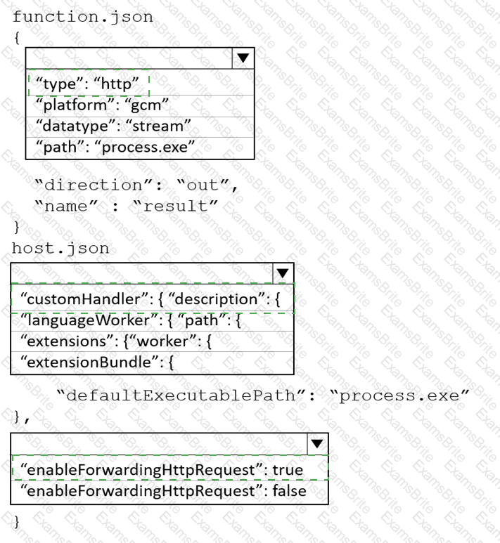 How should you complete the json files? To answer, select the appropriate options in the answer area.