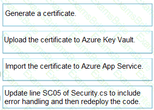 Which four actions should you recommend be performed in sequence? To answer, move the appropriate actions from the list of actions to the answer area and arrange them in the correct order.