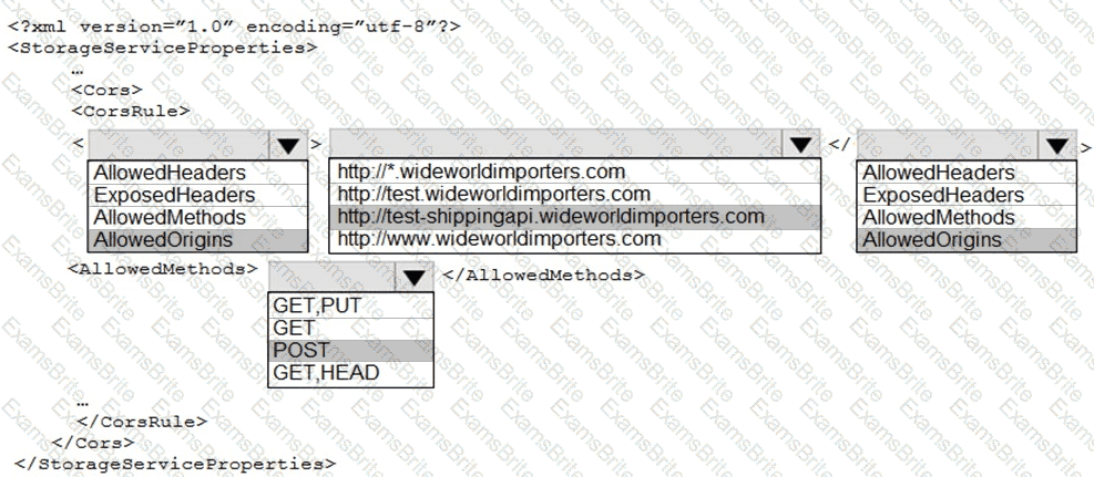 How should you configre the Azure Table Storage service? To answer, select the appropriate options in the answer area.