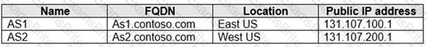 You plan to use Azure Traffic Manager to manage the routing of traffic for www.contoso.com between AS1 and AS2.