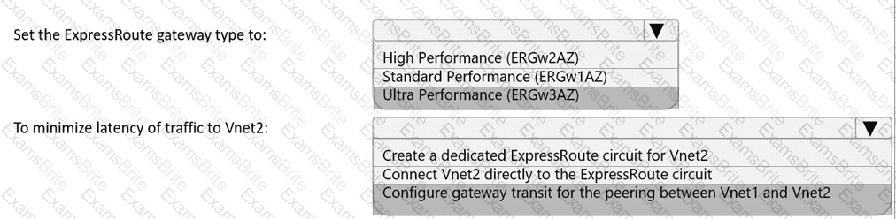 You need to configure connectivity between NYCNet and SFONet. The solution must meet the connectivity requirements. What should you do? To answer, select the appropriate options in the answer area. NOTE: Each correct selection is worth one point.