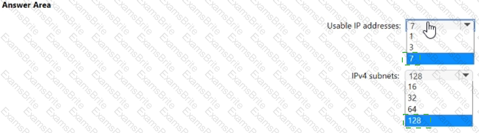 What is the maximum number of IPv4 subnets you can create, and how many usable IP addresses will be available per subnet? To answer, select the appropriate options in the answer area.