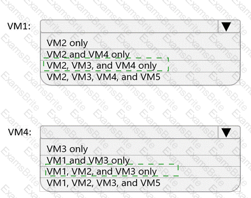 Which virtual machines can VM1 and VM4 ping successfully? To answer, select the appropriate options in the answer area.