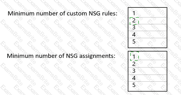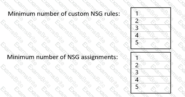 What is the minimum number of custom NSG rules and NSG assignments required? To answer, select the appropriate options in the answer area.
