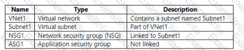 In which NSGs can you use ASG1 and to which virtual machine network interfaces can you associate ASG1? To answer, select the appropriate options in the answer area.