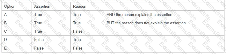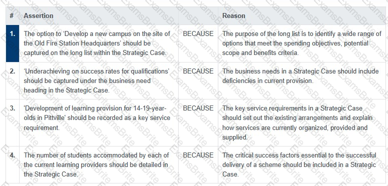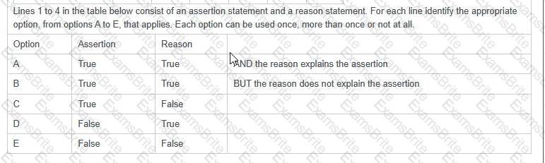Lines 1 to 4 in the table below consist of an assertion statement and a reason statement. For each line identify the appropriate