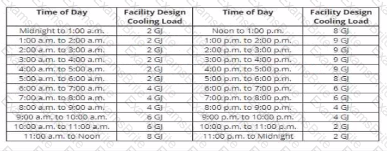 A facility has the thermal cooling load profile shown in the table below. The utility rate traffic has an no-peak time-of-use period that begins at 10:00 a.m ends at 7:00 p.m. What chiller capacity (output) is required for a load-leveling operating strategy?