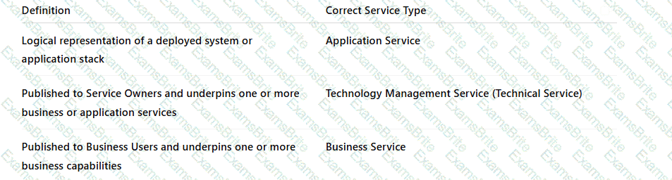 Given a list of Service types in the platform, drag the appropriate service to its definition.