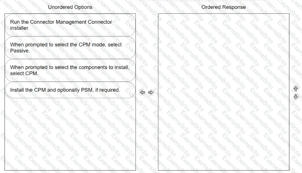 Arrange the steps to install passive CPM using Connector Management in the correct sequence