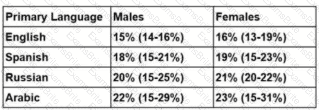 The data below shows 30-day readmission rates for heart failure patients by the primary language spoken and by gender with 95% confidence intervals in parentheses. Which group should be the priority target for reducing disparities in readmission rates?