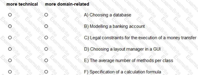 Which of the following aspects are more of a domain-related nature, and which more of technical nature? (Assign all answers.)