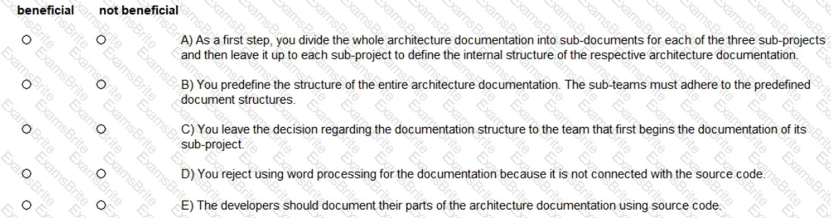 You are responsible for the documentation of the software architecture of a large development project. The project consists of three teams, each with its own architect, but with you as the person having overall responsibility of the entire project's software architecture.