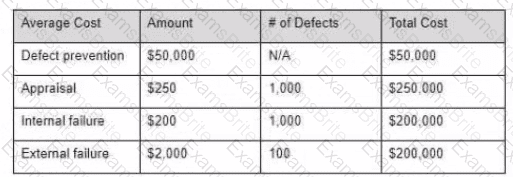 You have assembled the following cost of quality numbers 1 000 defects were found prior to release and 100 were found after.