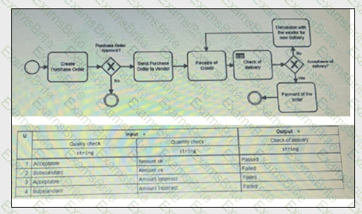 Consider the following BPMN model and the related DMN model describing the decision rules associated to the "Check of delivery" activity