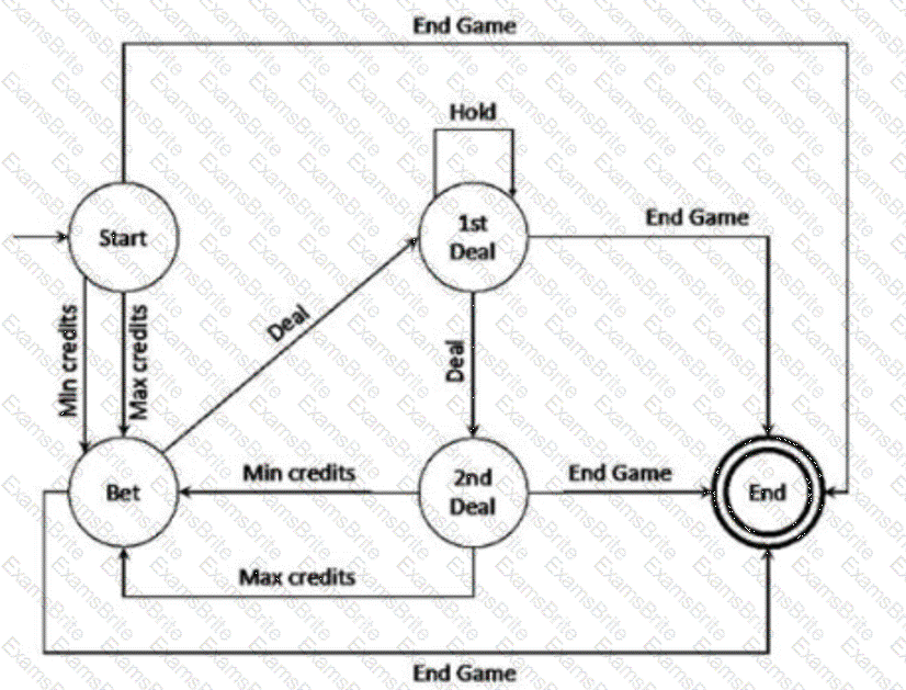 Consider the following simplified version of a state transition diagram that specifies the behavior of a video poker game: