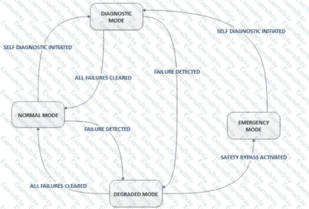 The following state transition diagram describes the behavior of a control system in terms of its possible modes of operation. The initial start state will be the “NORMAL MODE”.