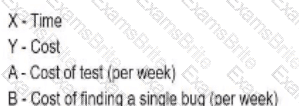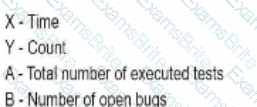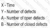 The following chart represents metrics related to testing of a project that was competed. Indicate what is represented by tie lines A, B and the axes X.Y