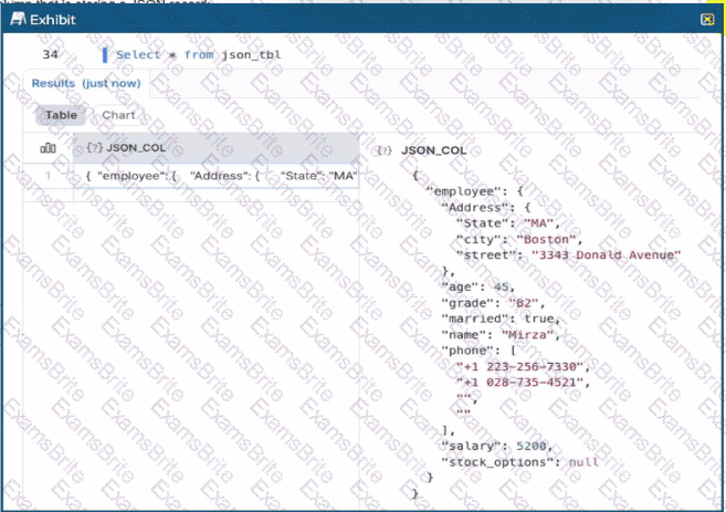 The image shows a table with a variant column that is storing a JSON record: