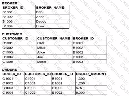 Which query would return a list of all brokers, a count of the customers each broker has. and the total order amount of their customers (as shown below)?