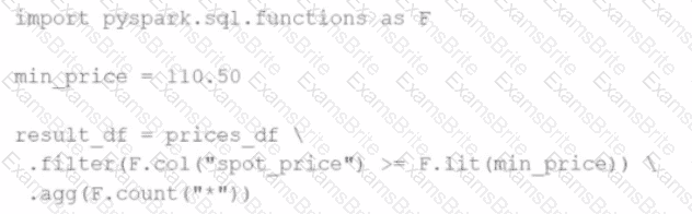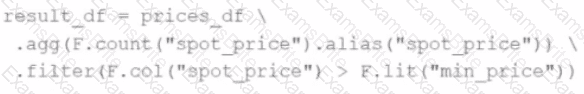 result_df = prices_df.filter(F.col("price") > min_price).agg(F.count("*"))