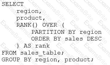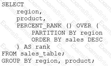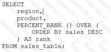 A data analyst has been asked to use the below tablesales_tableto get the percentage rank of products within region by the sales: