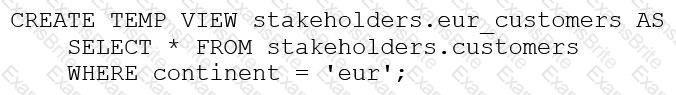 After logging back in two days later, what is the status of thestakeholders.eur_customersview?