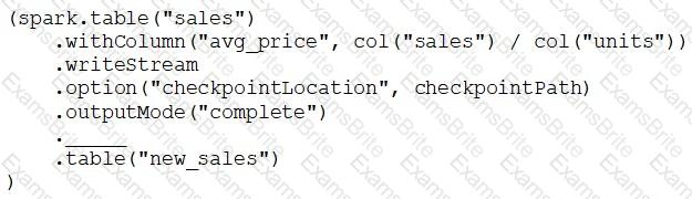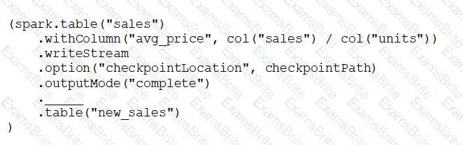 A data engineer has configured a Structured Streaming job to read from a table, manipulate the data, and then perform a streaming write into a new table.