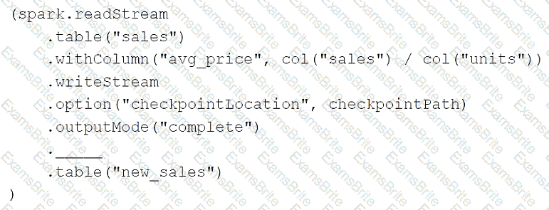 Which of the following changes needs to be made so this code block will work when the transactions table is a stream source?