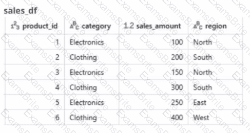 A global retail company sells products across multiple categories (e.g.. Electronics, Clothing) and regions (e.g.. North. South, East. West). The sales team has provided the data engineer with a PySpark dataframe named sales_df as below and the team wants the data engineer to analyze the sales data to help them make strategic decisions.