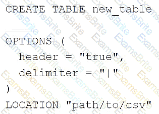 A data engineer needs to create a table in Databricks using data from a CSV file at location /path/to/csv.