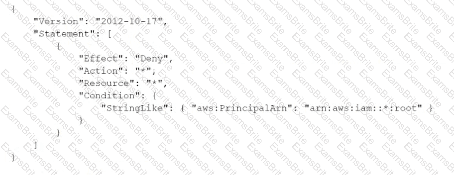 A recent alert shows that the root user in a member account launched an Amazon EC2 instance. A DevOps engineer must create an SCP at the organization's root level that will prevent the root user in member accounts from making any AWS service API calls.