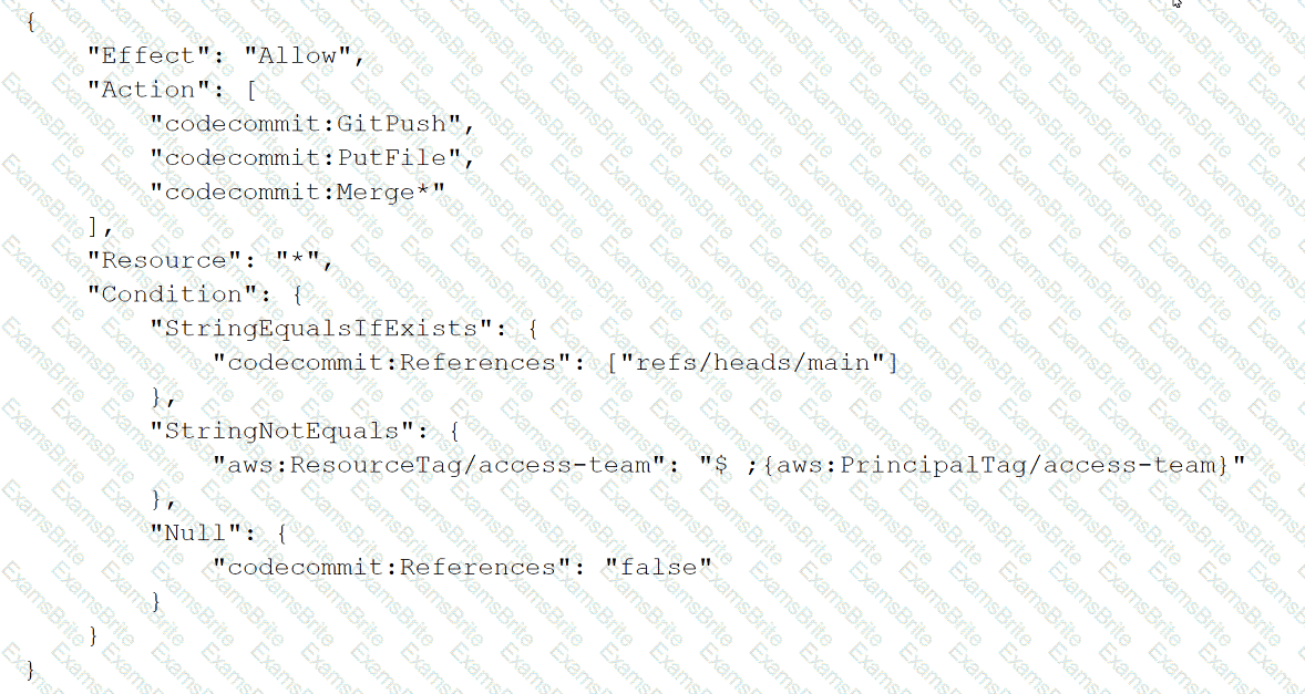 A company uses AWS CodeArtifact to centrally store Python packages. The CodeArtifact repository is configured with the following repository policy.