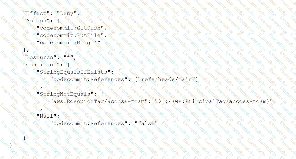 A security audit reveals that the application teams can modify the main branch in any repository. A DevOps engineer must implement a solution that