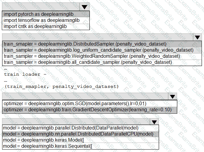 How should you complete the code segment? To answer, select the appropriate options in the answer area.