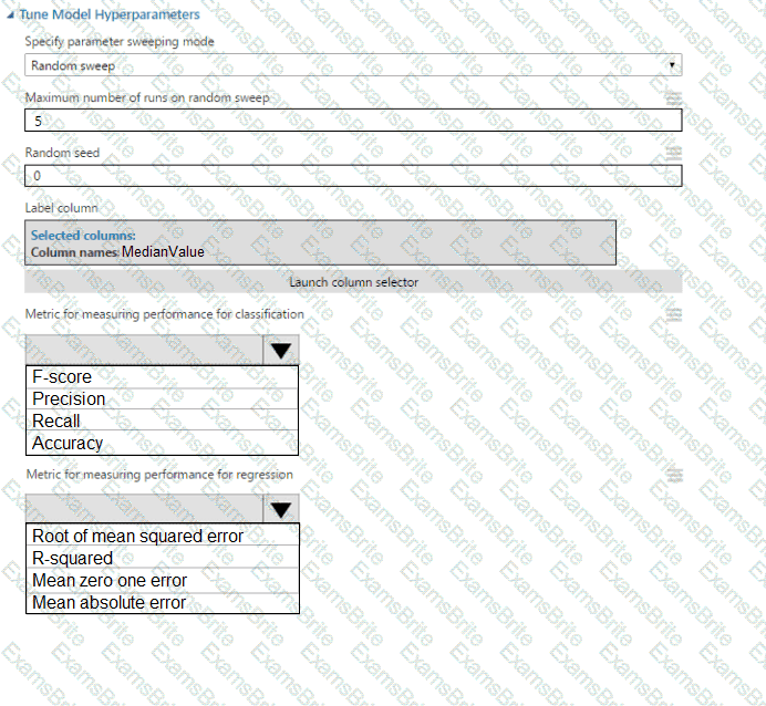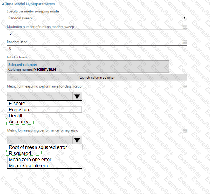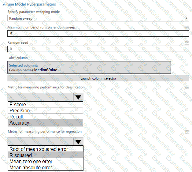 classification model. You use the Tune Model Hyperparameters module to tune accuracy for the model.