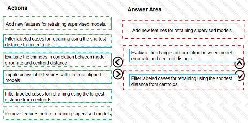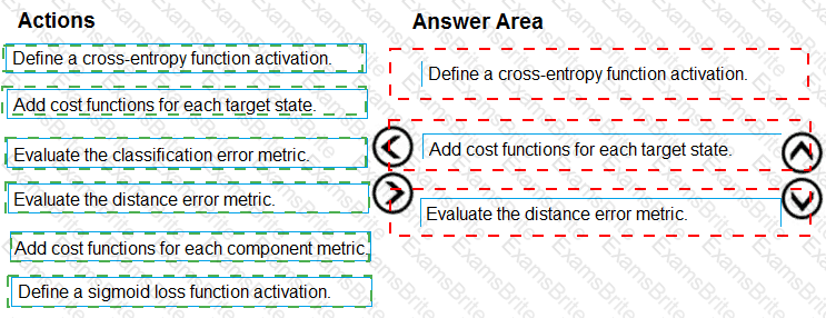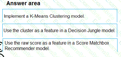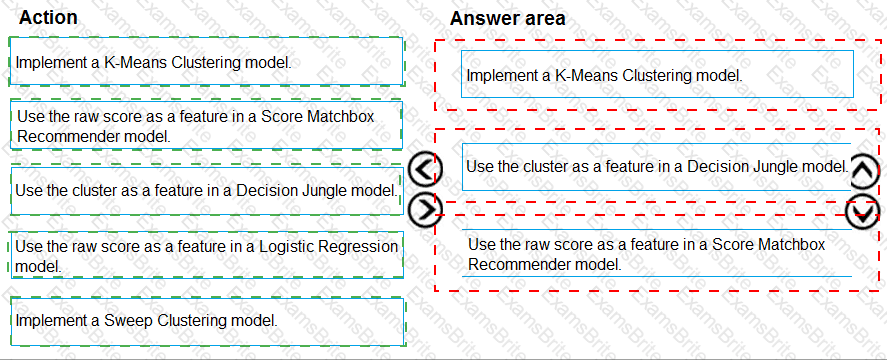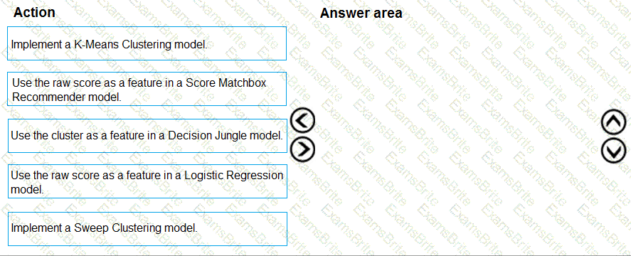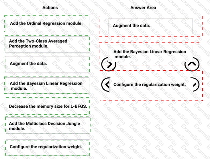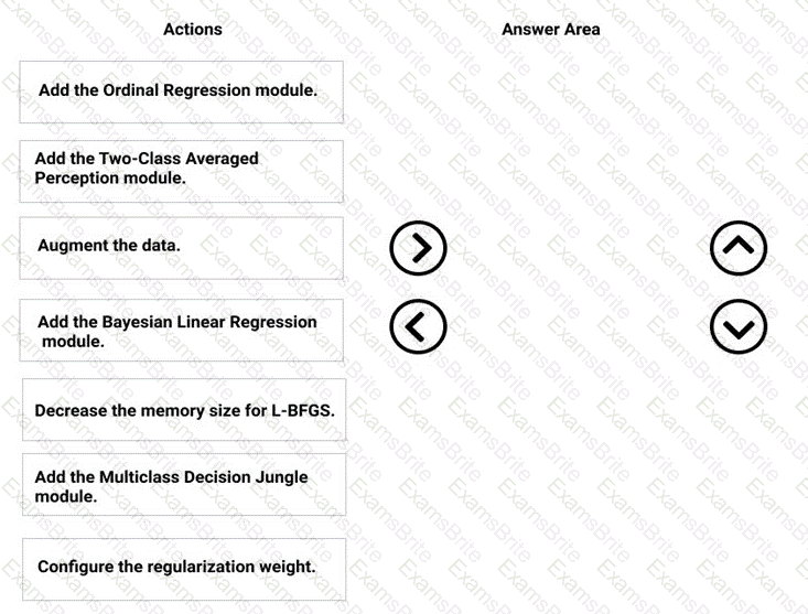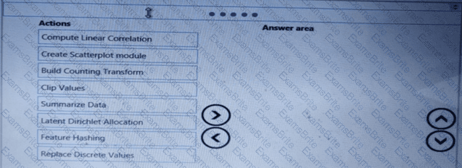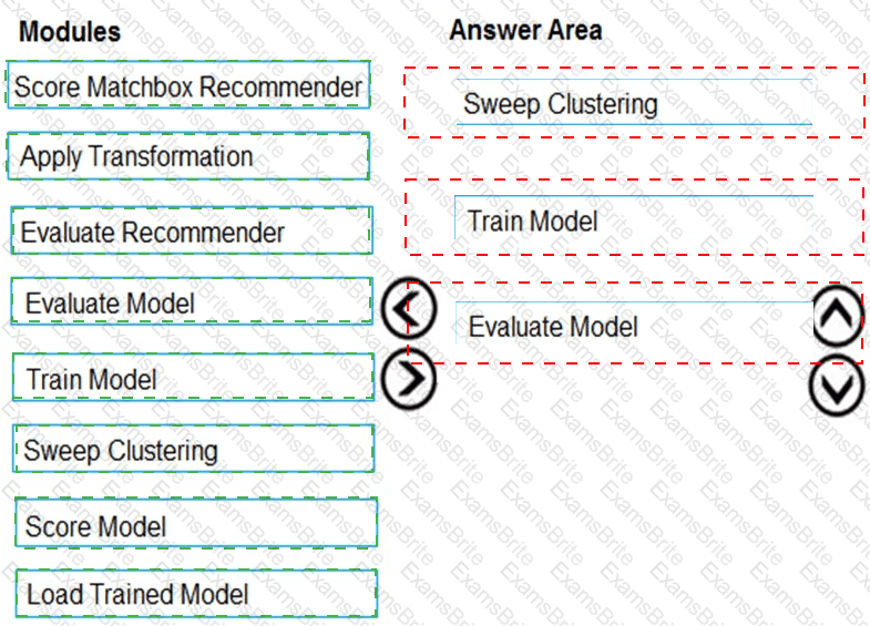 Which three Azure Machine Learning Studio modules should you use in sequence? To answer, move the appropriate modules from the list of modules to the answer area and arrange them in the correct order.