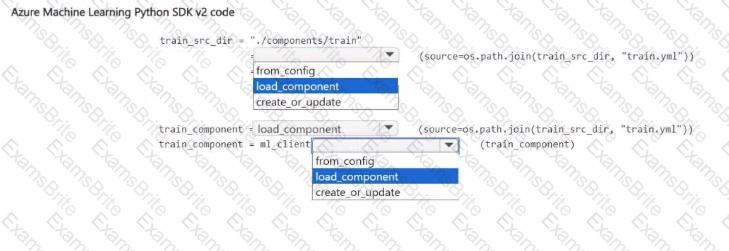 You plan to use Azure Machine Learning Python SDK v2 to register a component in the workspace The component definition is stored in the local file ./components/train/train.yml.