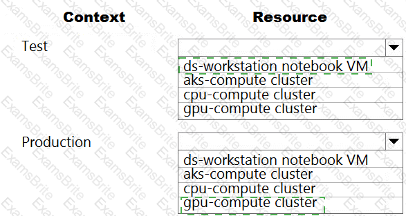 Which compute resources should you use? To answer, select the appropriate options in the answer area.