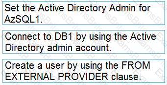 You need to create a contained database user in DB1 who will use Azure Active Directory (Azure AD) for authentication.