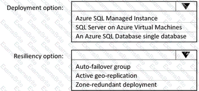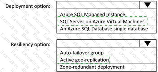 You need to configure high availability for dbl. The solution must tolerate the loss of an Azure datacenter without data loss or the need to modify application connection strings.