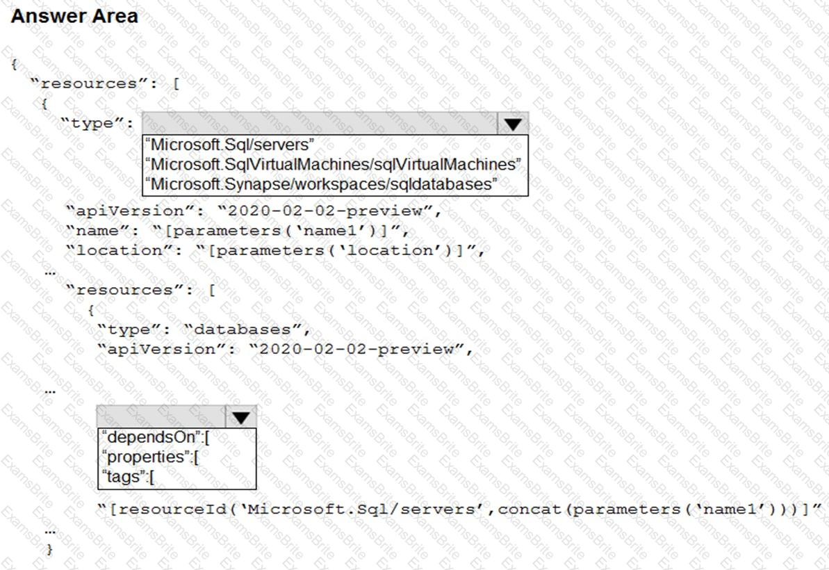 You plan to deploy an Azure SQL database by using an Azure Resource Manager template.